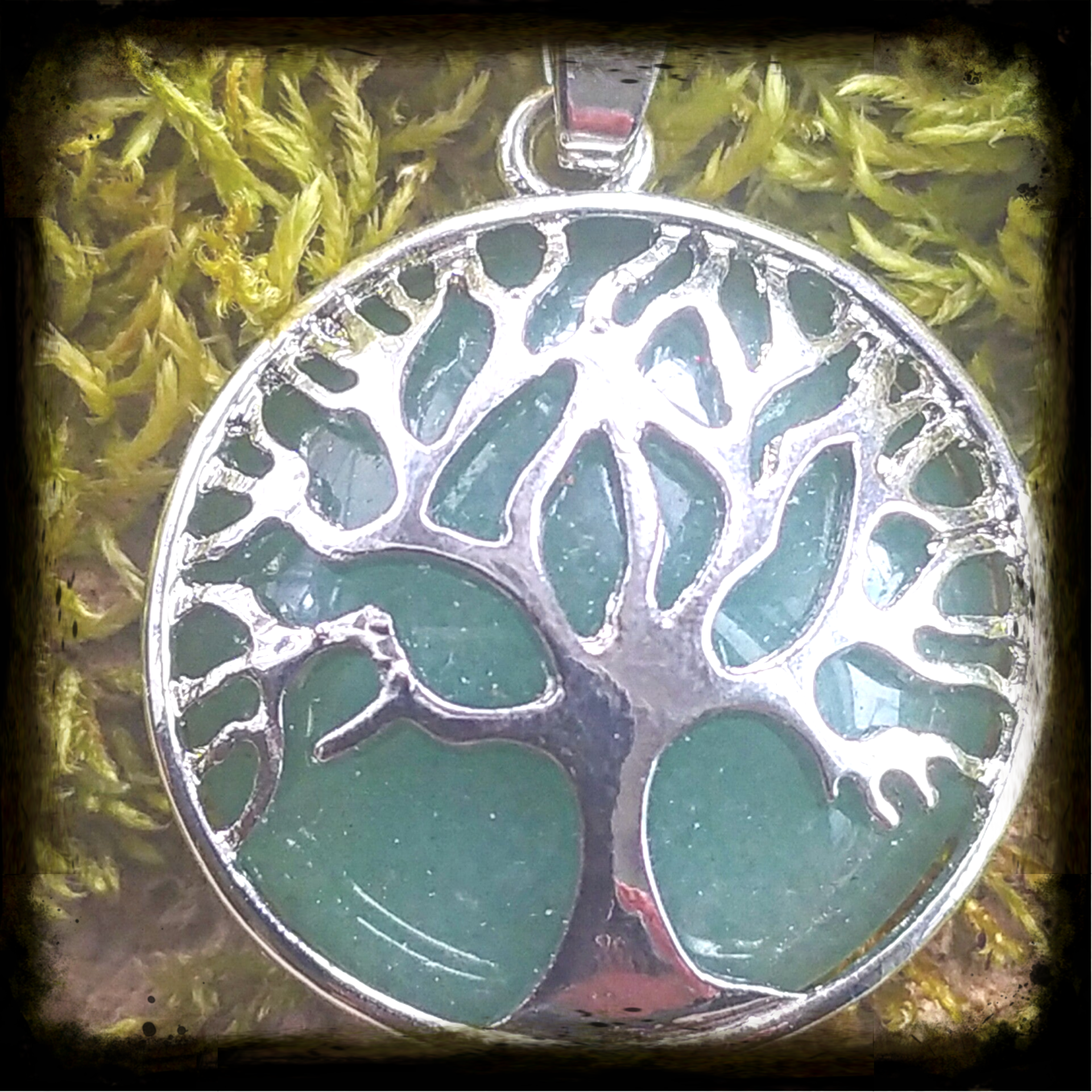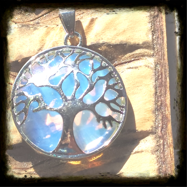 Edelstein Anhänger Baum des Lebens Matrial Edelstahl Versilbert.